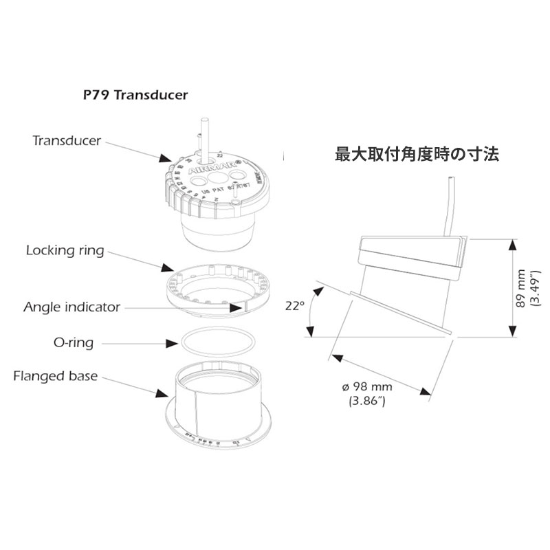 ハウジングをベースに取付する位置により、船体デッドライズ角度を最大22°まで調整可能。